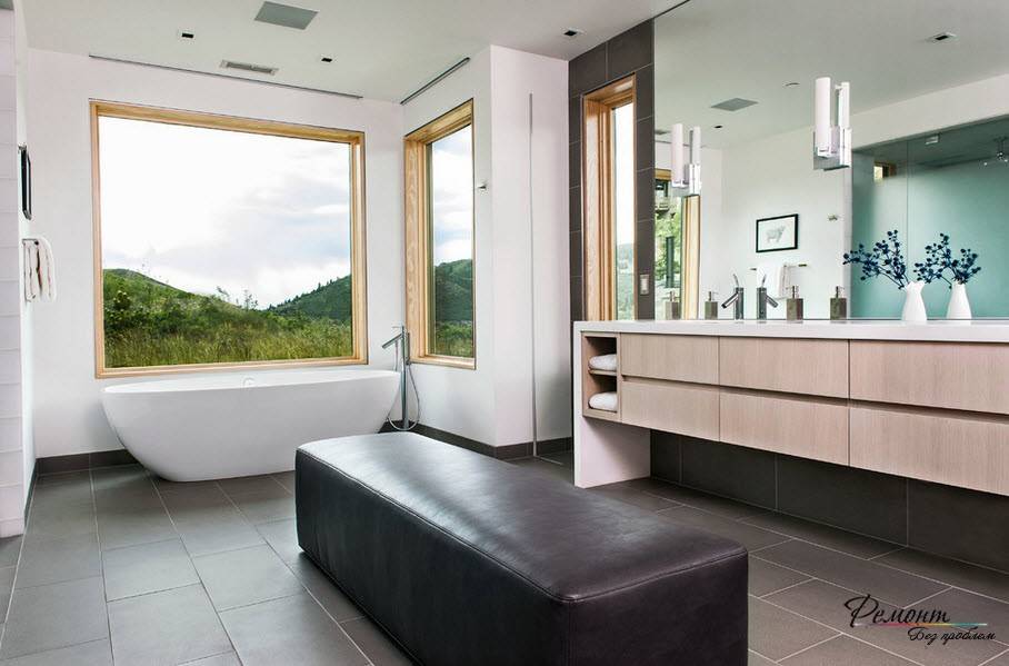 Дизайн ванной требует внимательного отношения к взаимному расположению предметов сантехники и мебели