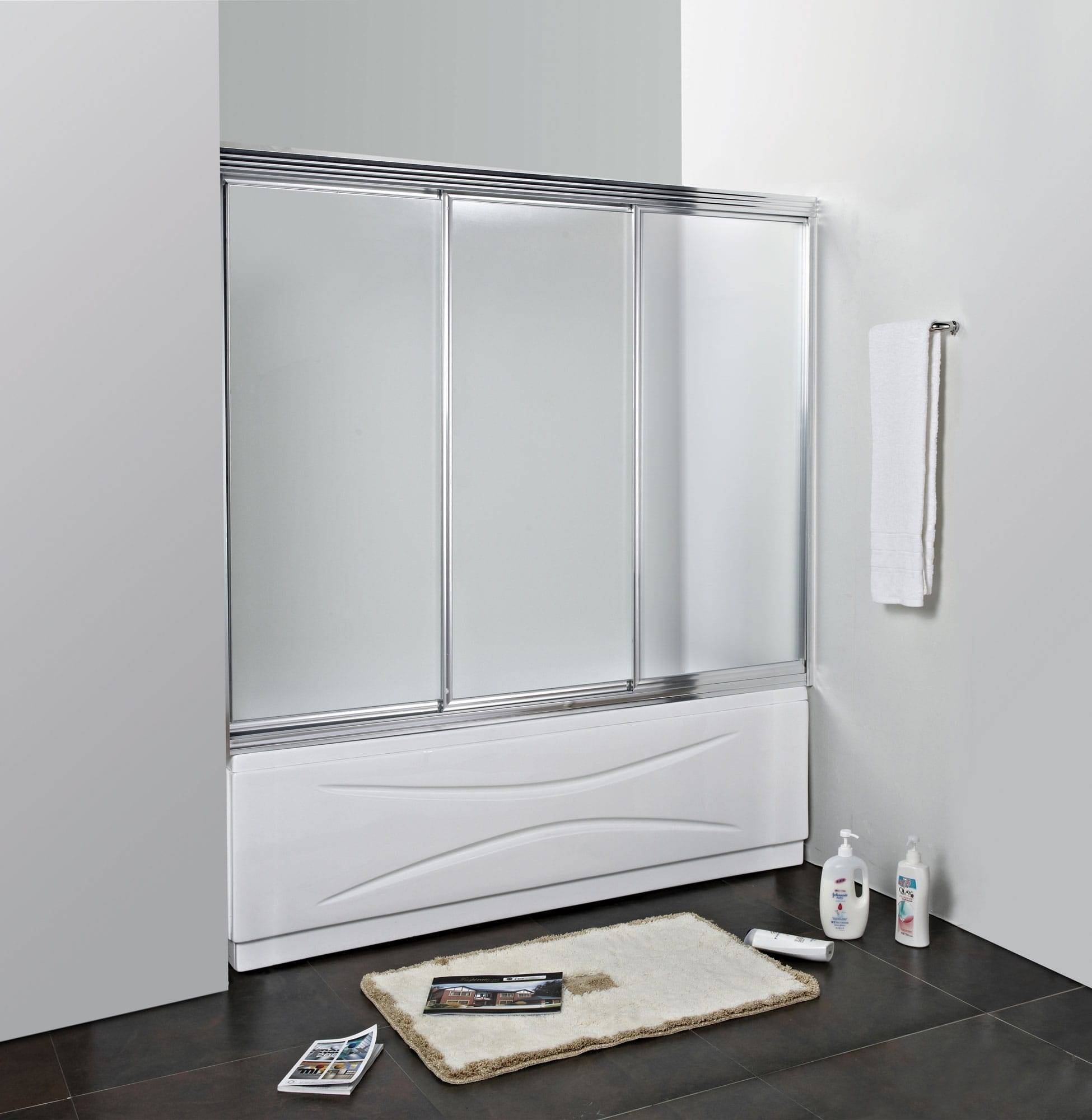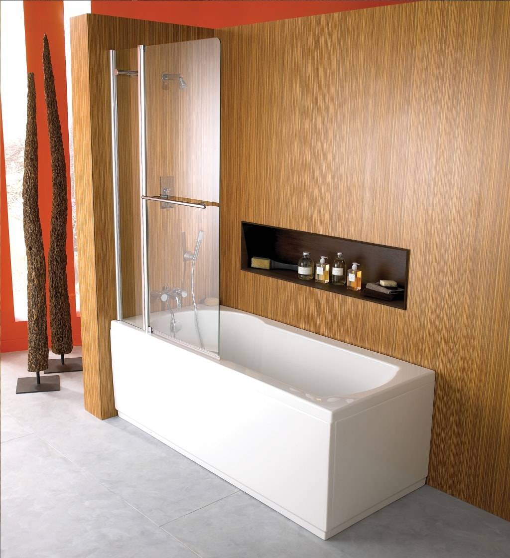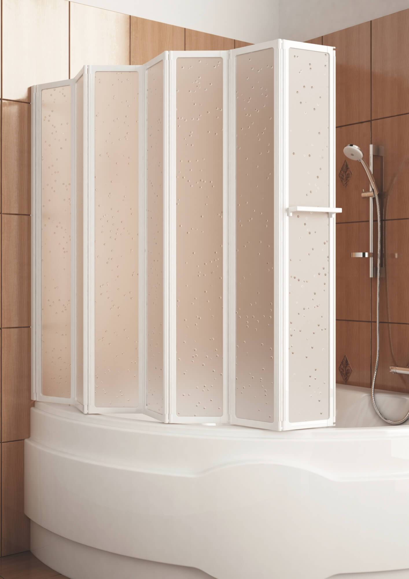 Данная модель представлена в виде своеобразной ширмы, которая способна закрыть всю ванну, половину или ее треть. Очень уместно установить подобный экран в случае, когда возле ванны находится стиральная машинка, шкафчик или другая мебель, техника, которую нужно защитить от брызг воды.
