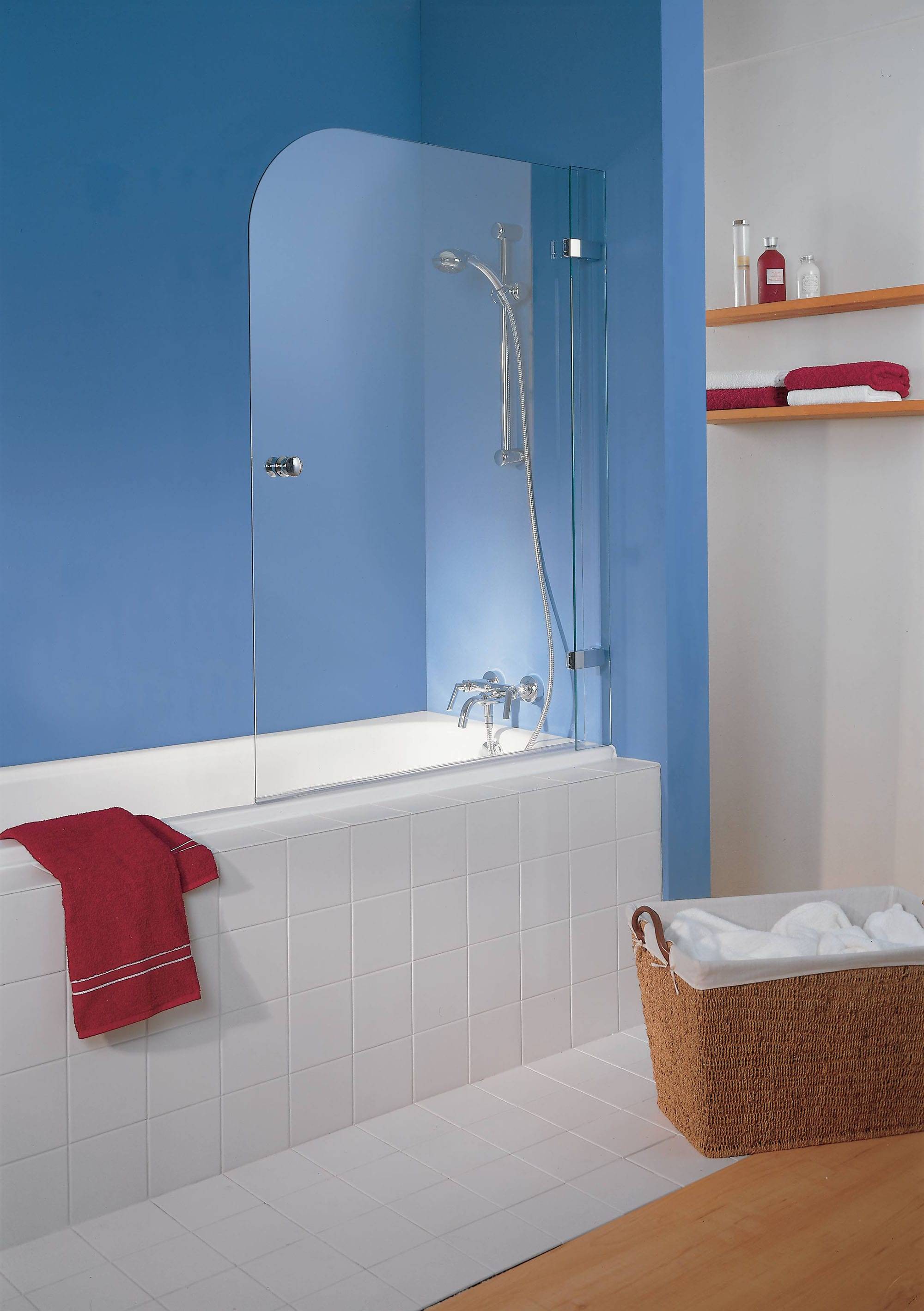 Распашная стеклянная шторка для ванной