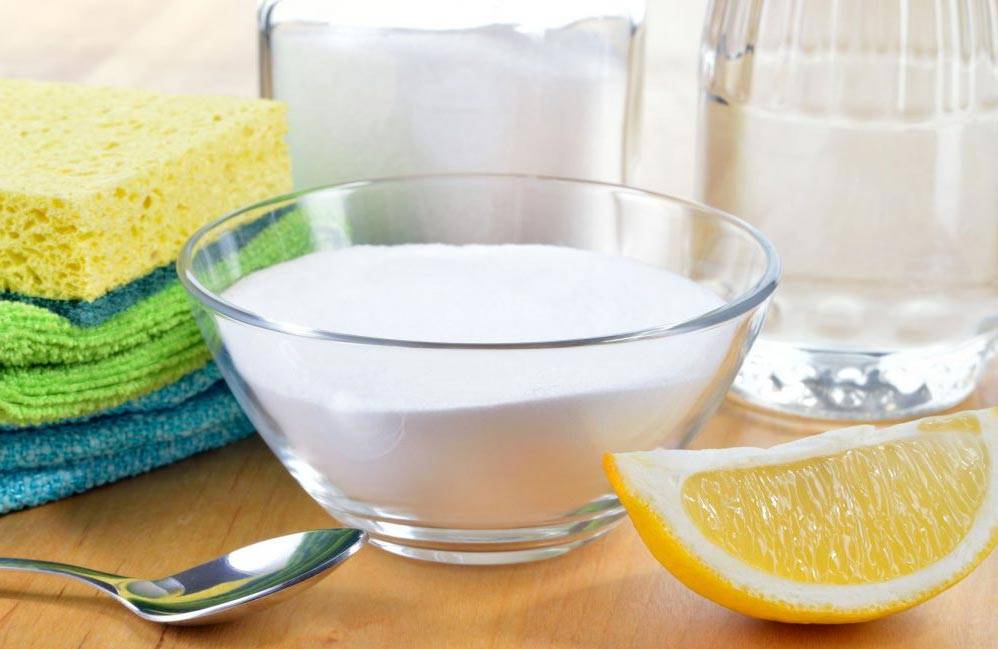 Активно используется соединение соды, лимонной кислоты и уксуса, в результате чего получается универсальное чистящее средство, способное легко убрать грязь, гниль, известь и ржавчину. Для приготовления состава в подходящую емкость наливают 1,5 л теплой воды, выдавливают сок из половинки лимона, добавляют 1/2 стакана соды, 50 мл 9% уксуса.