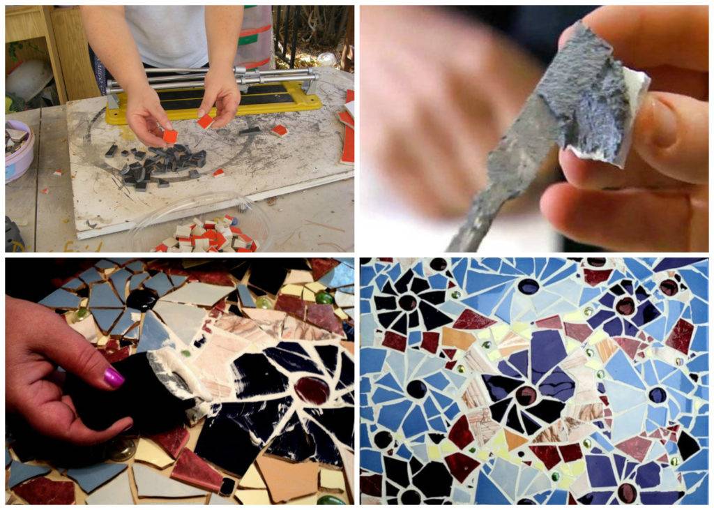 Возможно, у вас уже есть сырьё, но если и нет, не страшно. Любой магазин с радостью продаст за гроши бой и остатки керамики. Хорошо, если имеется знакомый мастер-плиточник, который постоянно сталкивается с необходимостью выбрасывать отходы. Возьмите на себя его «мусор» и окажетесь с неисчерпаемым запасом плитки. Запасайтесь разноцветным сырьём, лучше понемногу разных оттенков, чем много однотонного кафеля. Ещё лучше постоянно держать в голове будущий рисунок, так легче ориентироваться.