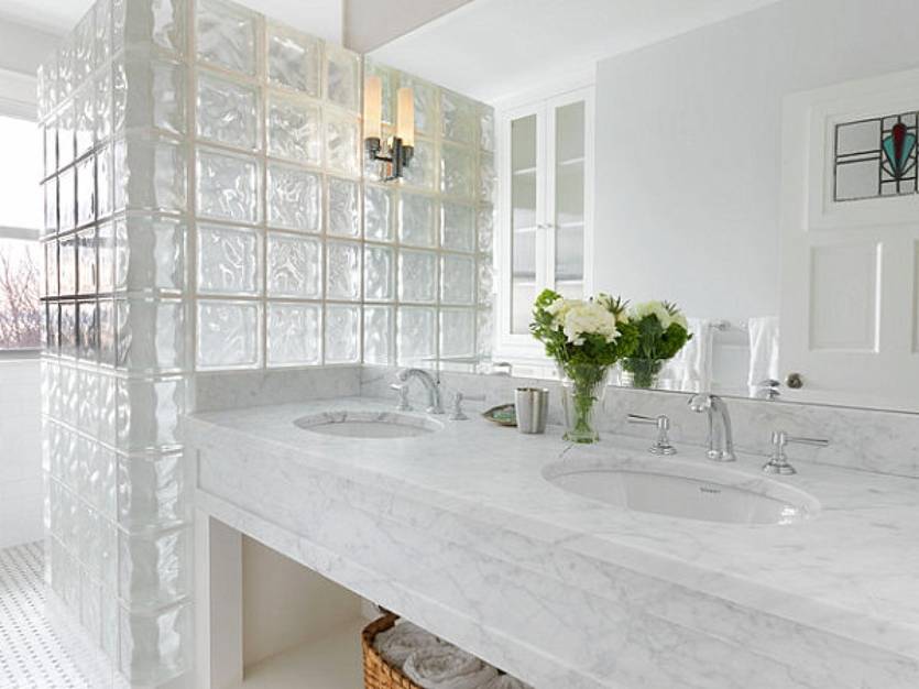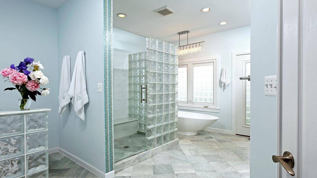 Область применения стеклянных блоков для перегородок в ванной