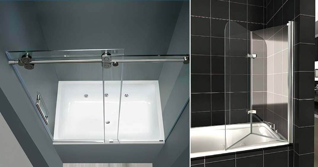 Пластиковые раздвижные шторки для ванны — гармошка (слева) и каркасная (справа)