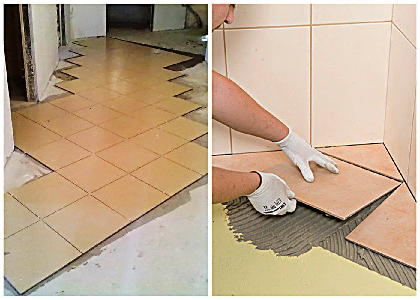 К слову, плитка по диагонали может укладываться двумя различными способами: