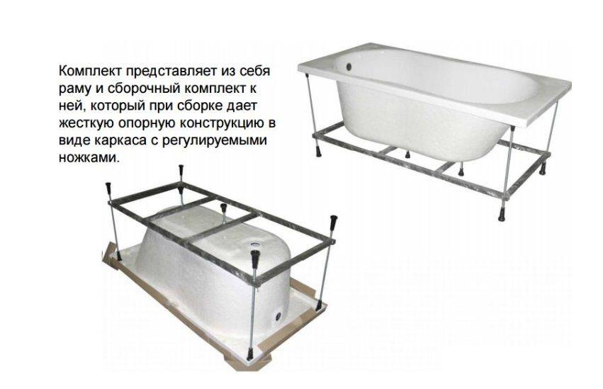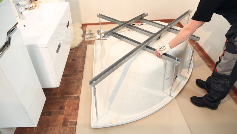 Под каждую ванну каркас разрабатывается свой, потому нюансы сборки у каждого случая свои. Даже у одной фирмы, под разные модели одной формы, каркасы бывают разные. Они учитывают геометрию ванны, а также распределение нагрузок. Тем не менее, порядок работ общий, как и некоторые технические моменты.