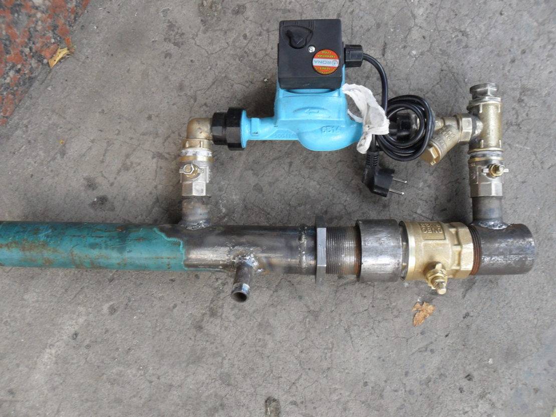 Монтаж помпы осуществляется через байпас (участок трубы меньшего диаметра, чем основной трубопровод, который будет страховочной веткой, на случай отключения электричества). Если не установить байпас, то выход насоса из строя, или отключение света, приведёт к полной остановке всего отопления.