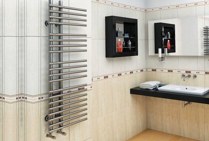 Если он более двух с половиной сантиметров, то от полотенцесушителя до стены должно быть 5–7 см. Если же диаметр труб меньше, то и необходимое расстояние уменьшается, оно должно составлять от 3,5 до 4 сантиметров.