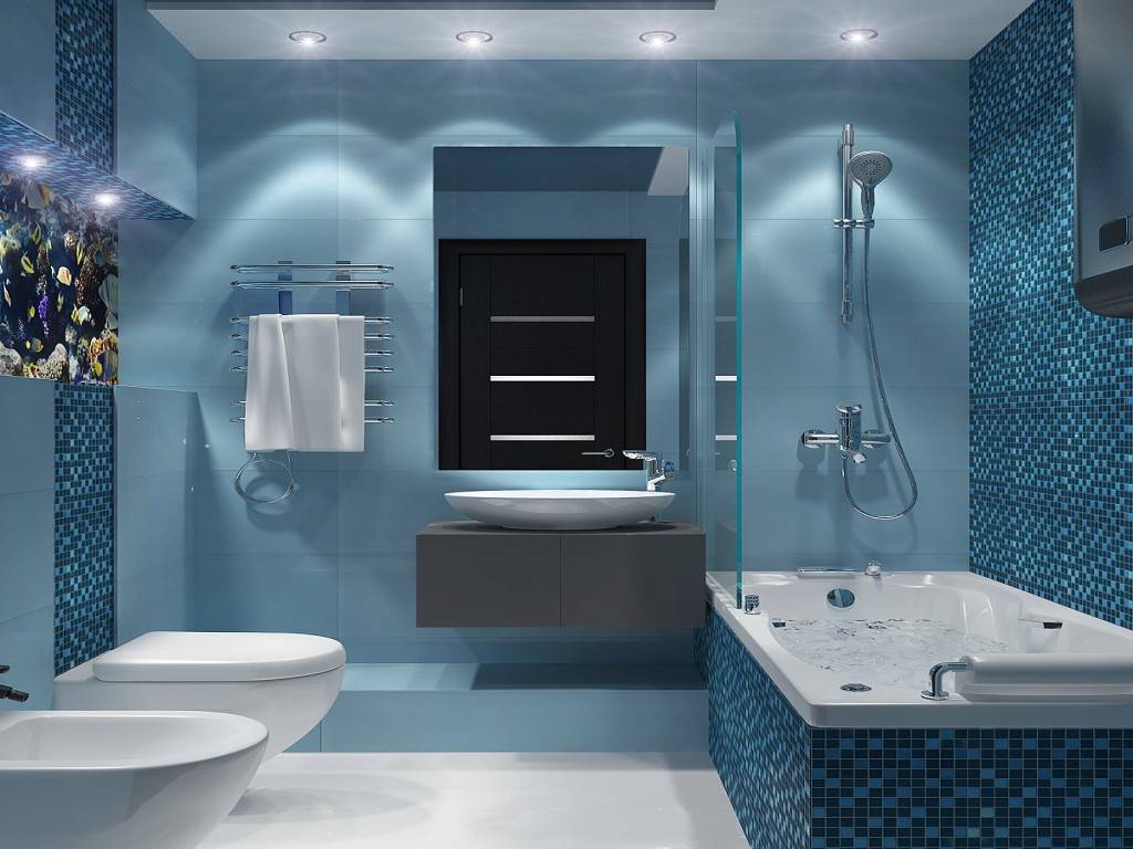 - если вы желаете, чтобы банные процедуры действовали на вас расслабляюще, выполните облицовку ванной в холодных тонах – синем, сером, голубом, зеленом, малахитовом, фиолетовом, бирюзовом;