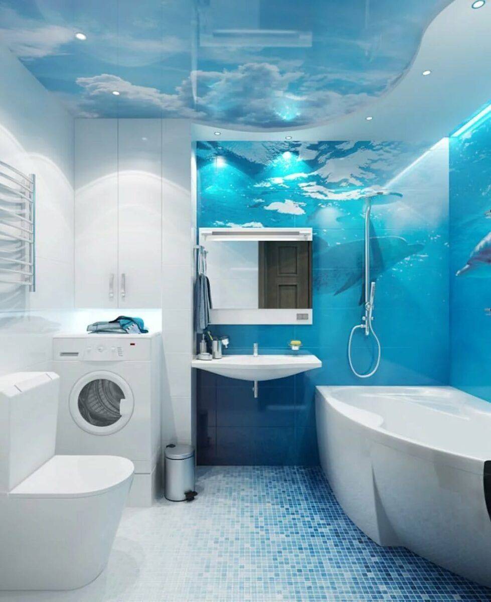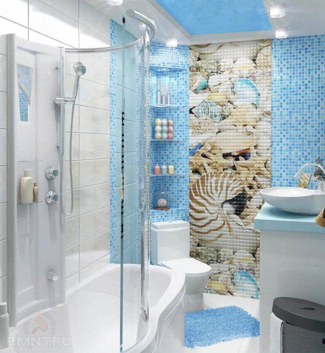 Плитка в ванную с морской темой – сочетание синего и белого «кабанчика»