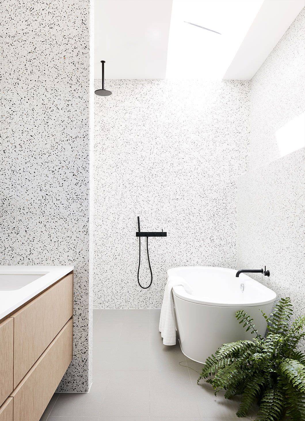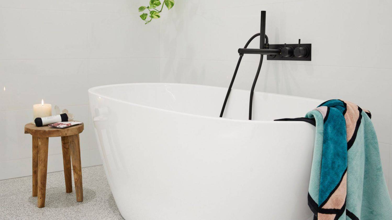 Светлая сантехника и темные полы прекрасно выделят определенные зоны для отдыха и расслабления.