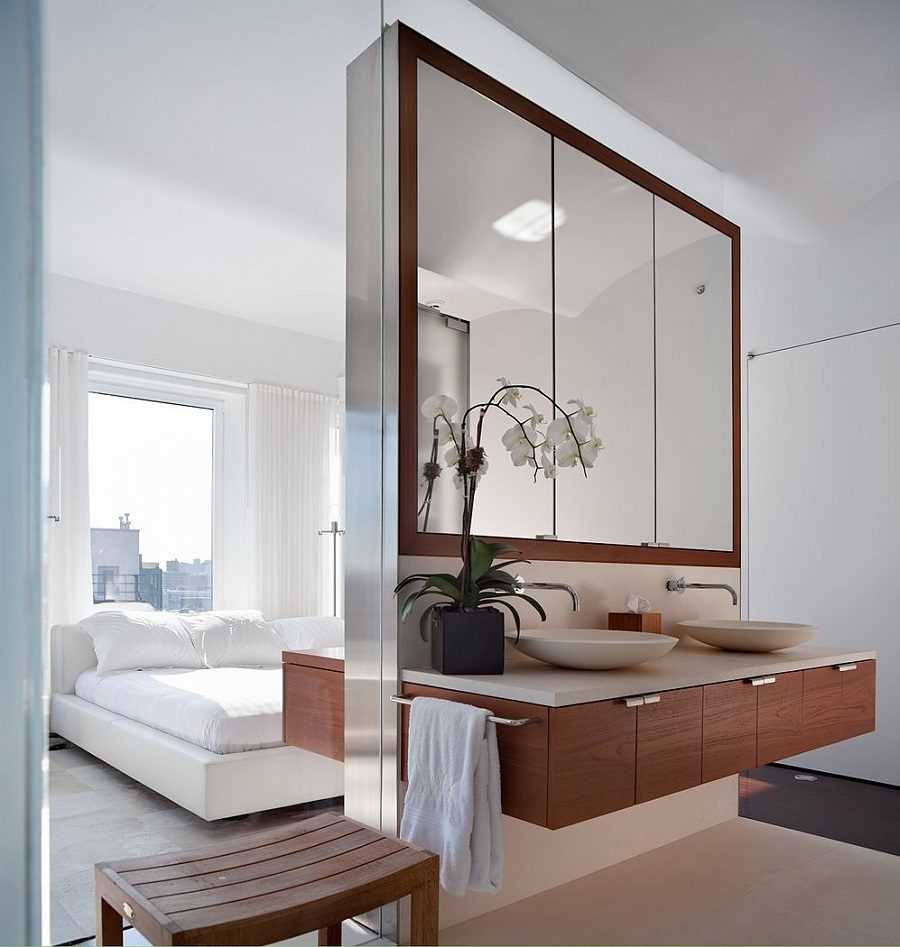 На сегодняшний день в качестве разделителя между спальней и встроенной ванной может выступать: