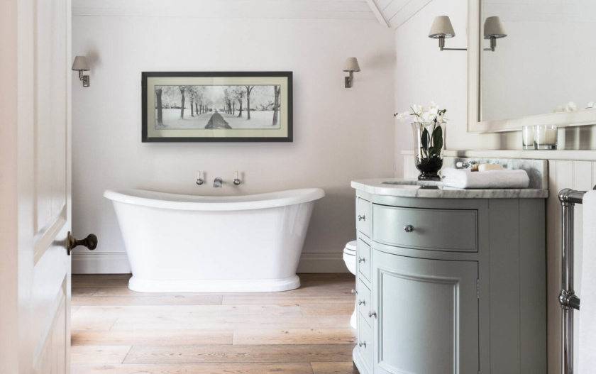Здесь, как правило, ванна будет стоять отдельно, на тонко украшенных, согнутых ножках или опираться на «львиные ножки». Туалет с высоким потоком ясно свидетельствует о духе старых времен.