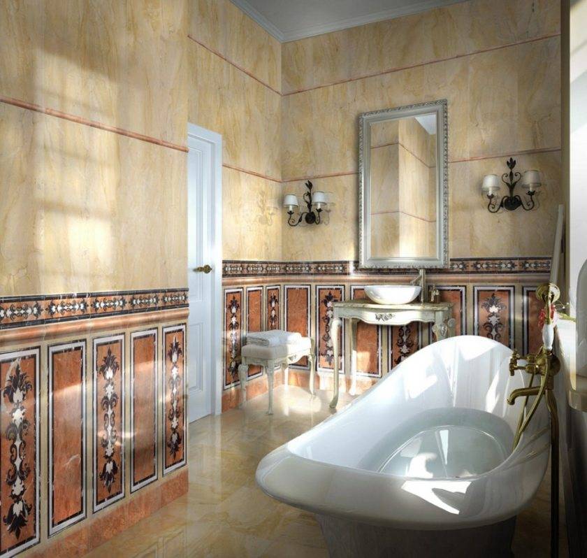 То, какие именно приёмы отделки лучше использовать при оформлении ванной в классическом стиле, зависит от ряда факторов: