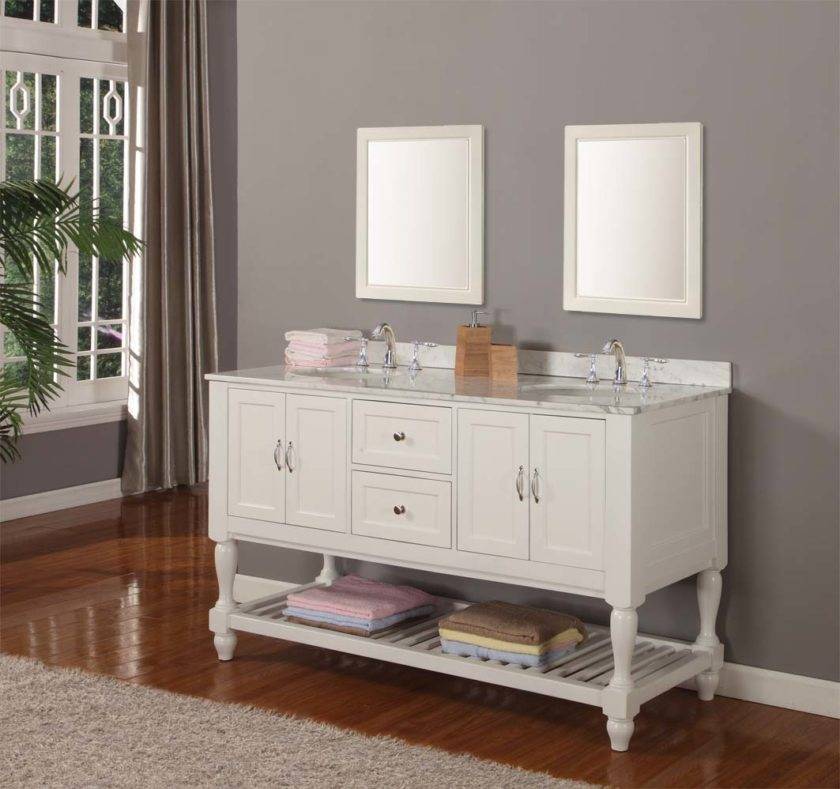 Хорошо смотрится сантехническая продукция различных белых оттенков, начиная от ярко белого цвета, а так же классическая мебель для ванной, ее лучше всего подобрать выполненной в старинном стиле, со всевозможными старинными украшениями и резьбой.