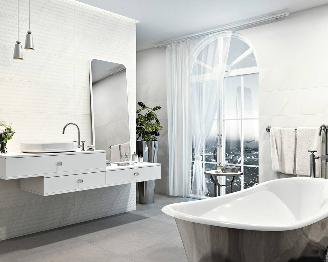 Хотим обратить ваше внимание на еще пару трендов, позволяющих преобразить интерьер ванной комнаты. Речь идет о зеркальных и рельефных материалах, которые, в зависимости от выбора места отделки, расширяют комнату или исправляют недостатки ее планировки