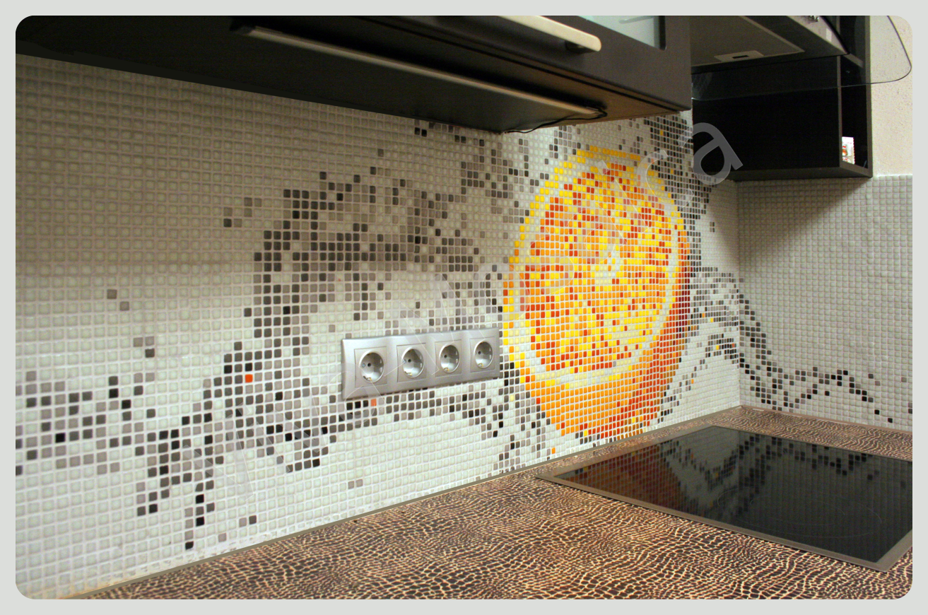 Мозаика придает стене в кухне особую «изюминку» или акцентирует внимание на какой-нибудь части помещения. Материал имеет различные цветовые оттенки, рисунки и фактуру