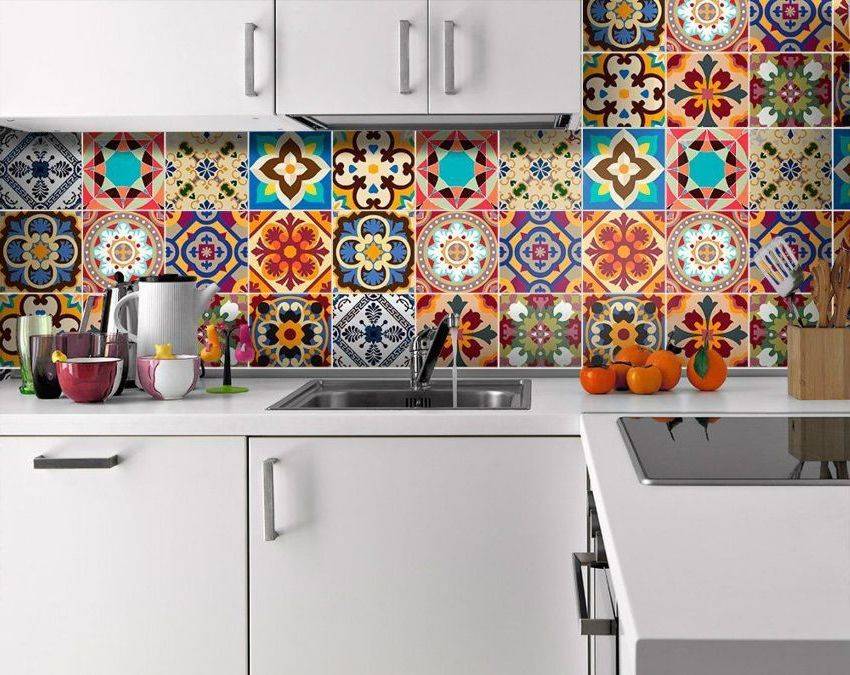 Материал имеет различную форму. Это могут быть кружки, ромбики, овалы, прямоугольники. Самой большой популярностью пользуются классические квадратики. В последнее время особенно распространена разновидность в виде сплошного полотна. Чаще ею покрывают рабочую стену и фартук. На столешнице она также отлично смотрится, а мозаичное настенное панно станет оригинальным украшением помещения.