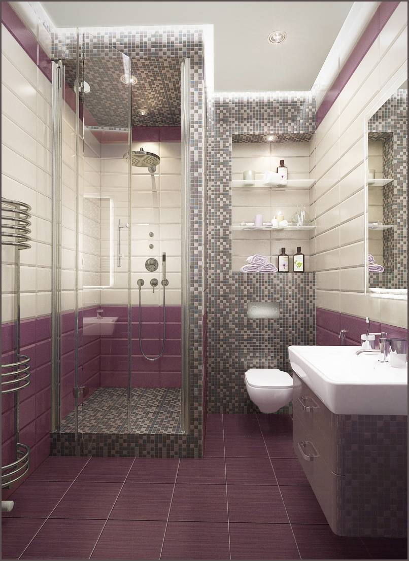 А что делать, если кафельной плиткой планируется отделывать небольшое по площади помещение, если схема раскладки плитки в ванной рассчитывается на маленькую площадь? Здесь у дизайнеров интерьера есть свои хитрости. Например, глянцевый блеск поверхности позволяет сгладить границы пространства. А белый, зеленый, бежевый тона позволяют сделать помещение визуально шире, чем есть на самом деле. Также работает на расширение границ пространства диагональная выкладка плитки в ванной.
