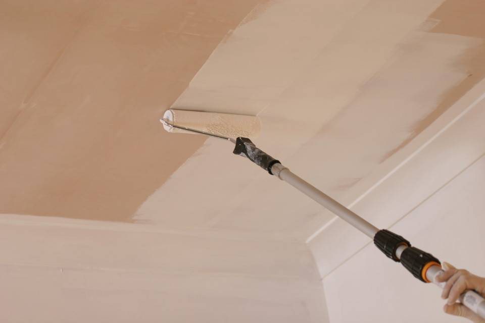 А вот для потолка лучше всего подойдёт окрашивание. Как показывает практика, это самый надёжный и долговечный способ отделки для небольшого бюджета. Главное требование — краска должна быть водостойкой.