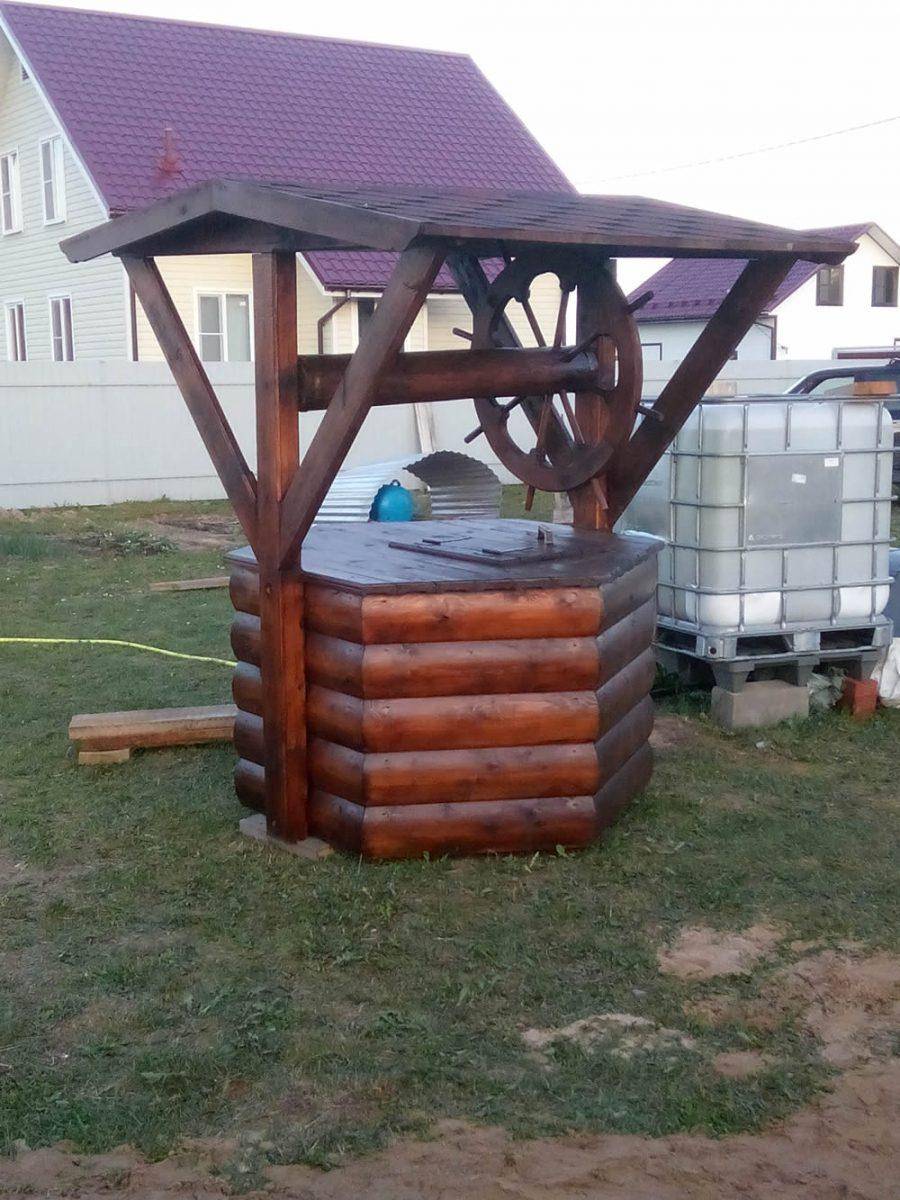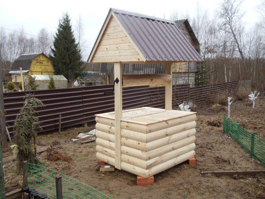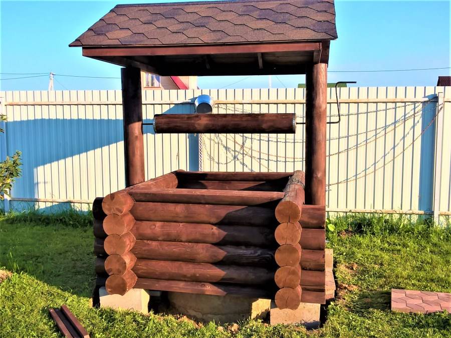 Перед работой древесина должна быть обработана антисептическими и влагостойкими составами для предотвращения поражения материала гнилью и вредными насекомыми. Над шахтами рекомендуется устанавливать крыши-навесы — они защитят воду от мусора и атмосферных осадков и придадут завершенность сооружению.