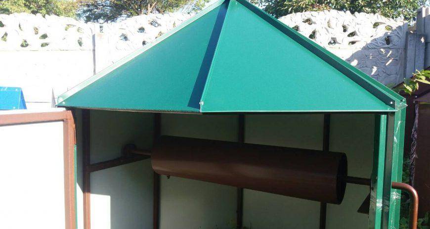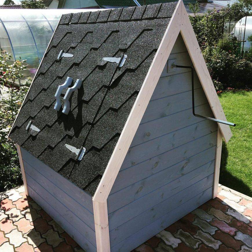 Можно в домик спрятать и бетонное кольцо. В этом случае ворот, как правило ставятся стойки отдельно, а затем собирается каркас. Размеры выбираете так, чтобы конструкция свободно накрывала кольцо. Высота — выше вашего роста сантиметров на 20: чтобы можно было спокойно наклоняться и доставать ведро.