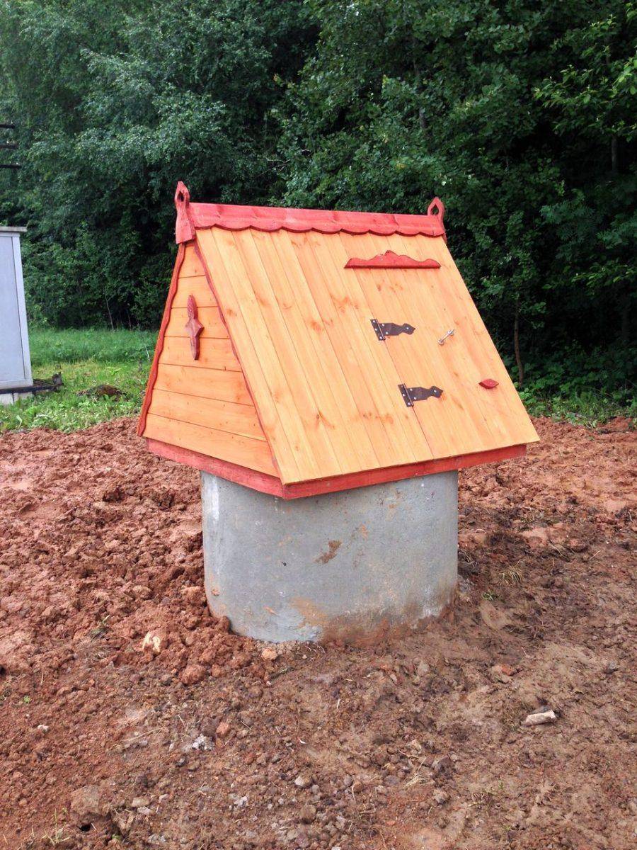 Речь идет о таком варианте укрытия для колодца — с дверкой. Если внутри еще сделать крышку, точно пыль попадать не будет.