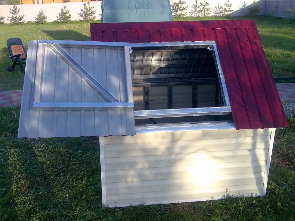 - фронты и скатная часть обшиваются. Доски должны выступать над конструкцией, как козырек;