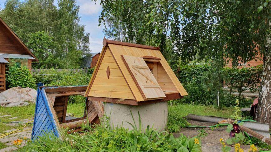 Основная задача, которую выполняет такая конструкция — создание защитного эффекта для чистой колодезной воды от попадания пыли, различного мусора, опавшей листвы.