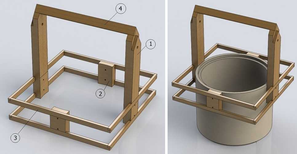 - каркасную часть и вертикальные балки нужно болтами прикрепить на кольцо из бетона;