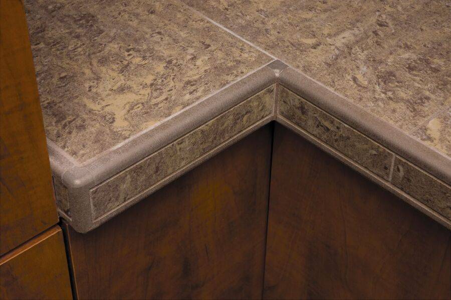Поверхность керамического профиля может быть оформлена в виде натурального гранита, мрамора или имитировать натуральное дерево. При выборе необходимо учитывать стилистическое направление, цветовую гамму и площадь пространства.