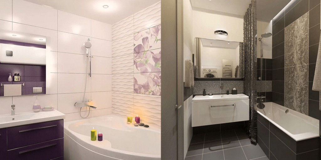 Главное правило здесь — чтобы цвета были достаточно контрастными, поскольку в противном случае оформление получиться безвкусным. Кстати, неплохим вариантом будет отделка по двухуровневой схеме — более темный низ и более светлый верх. Еще одно хорошее решение — использование плитки с цветами или абстрактными узорами.