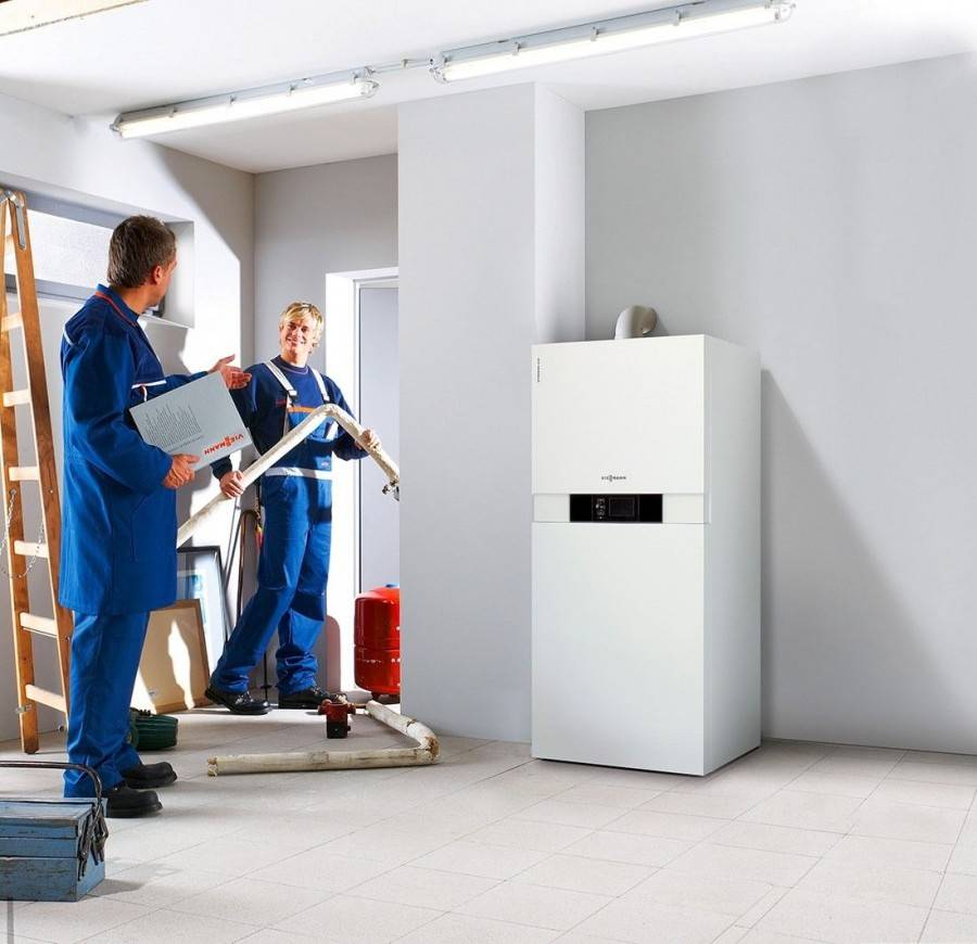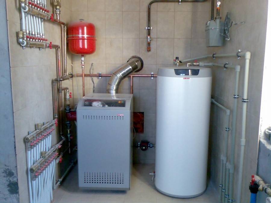 Монтажные работы следует начинать с установки отопительного котла. Если мощность оборудования не превышает 60 кВт, ставить прибор можно на кухне, если она выше, для котла следует отвести отдельное помещение. К источникам тепла, которые сжигают разные виды топлива, нужно обеспечить приток воздуха. Кроме того, необходимо обеспечить отвод продуктов горения. Сделать это можно при помощи правильно обустроенного дымохода.