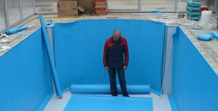 Строительные пленки для гидроизоляции ненадежные, используют специальную для бассейнов – лайнер. Она высокой прочности, армированная. Выпускается разных цветов, имитирует мозаику. Облицовка ускоряется, так как под лайнер гидроизоляция не нужна.