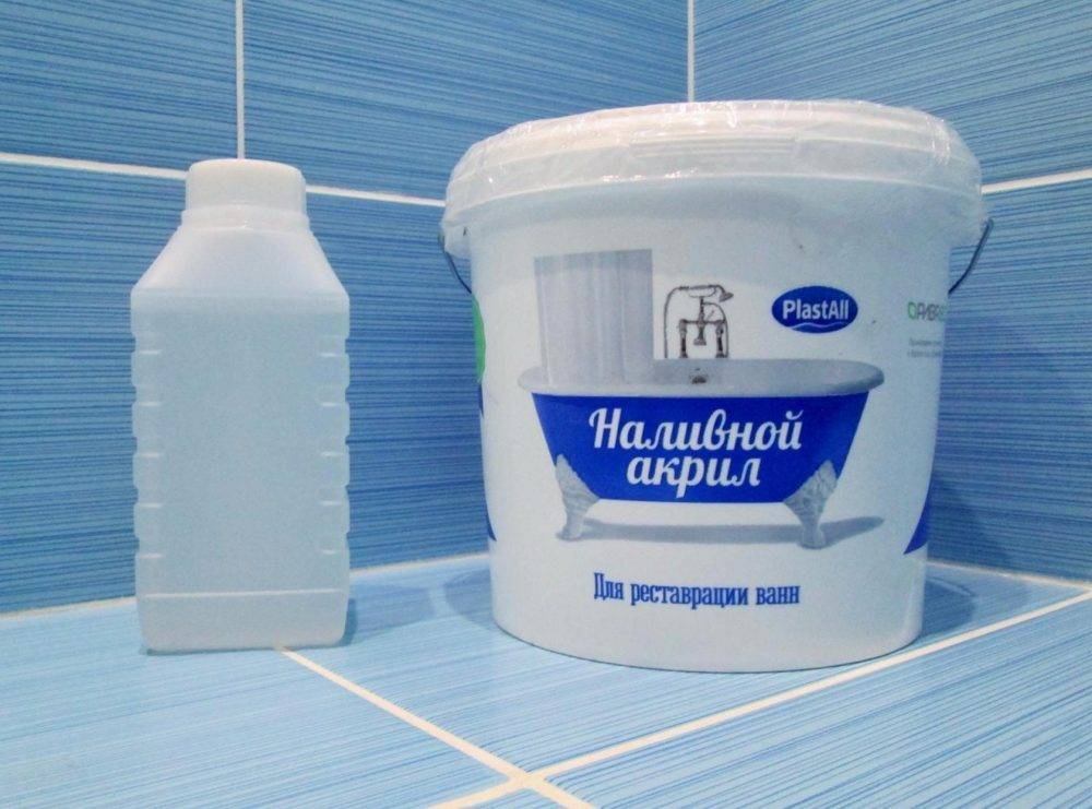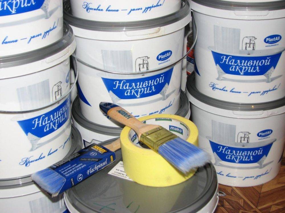 Еще одним способом реставрации ванн по тому же принципу является эмалировка ванн жидким акрилом. В этом случае вместо эпоксидных двухкомпонентных составов используются такие материалы как «Стакрил» или «Экованна».