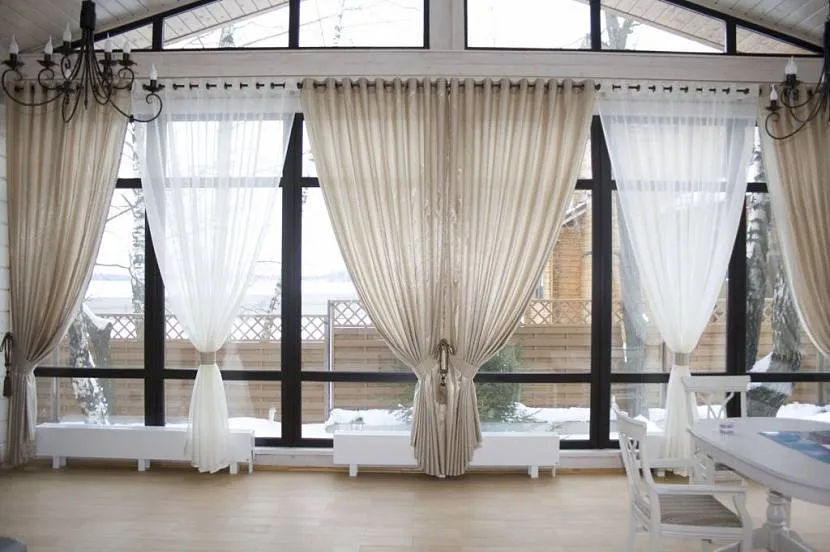 - Занавески по всей длине остекления — хорошая идея.