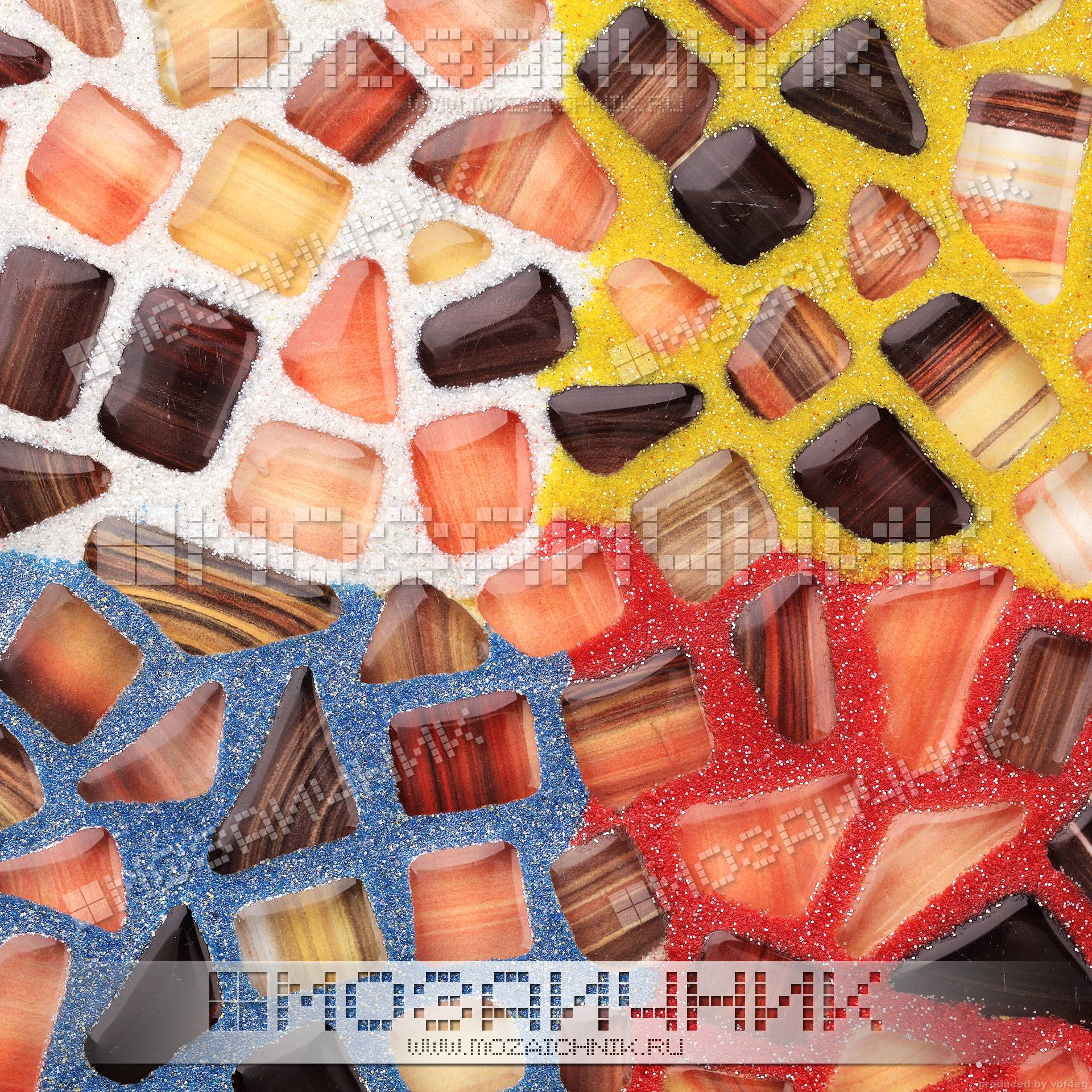 - Затирать швы стеклянной мозаики рекомендуется бесцветным раствором, поскольку он не будет выделяться. Таким образом покрытие обретет целостность.