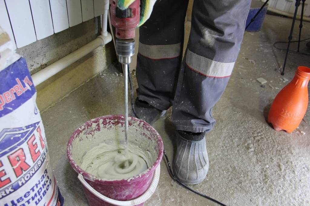 Важно при этом правильно выбрать способ приготовления раствора: лучше делать это вручную либо миксером, но на малых оборотах. В противном случае в смеси образуются пузырьки воздуха, которые кардинальным образом изменит отношение затирки к воде и влаге (полученная пористая структура будет легко их пропускать)