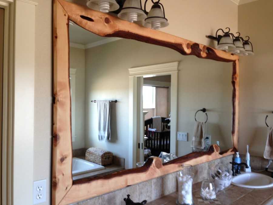 Декоративное оформление отражающей поверхности часто делают из натурального дерева и древесных остатков. За счет сочетания разных фактур создается эффектная и необычная рамка. Оригинальное обрамление можно собрать самостоятельно.